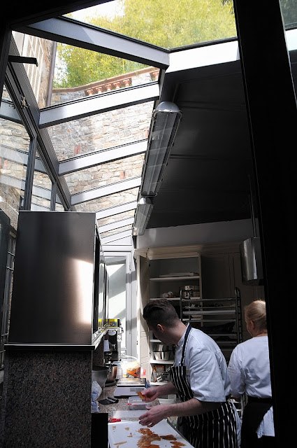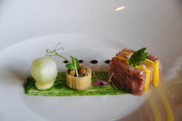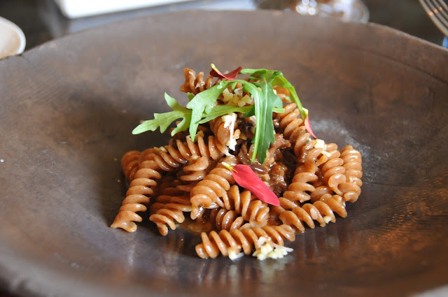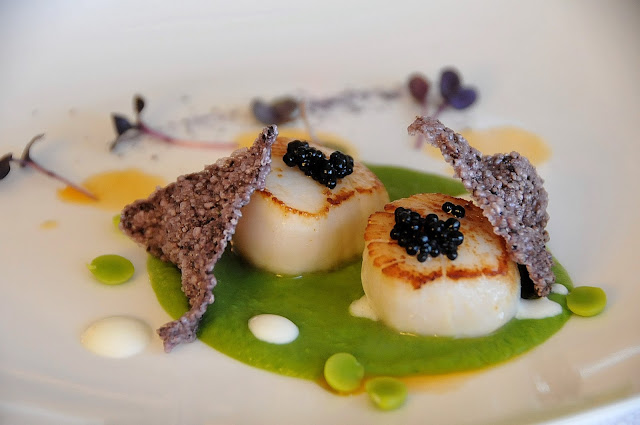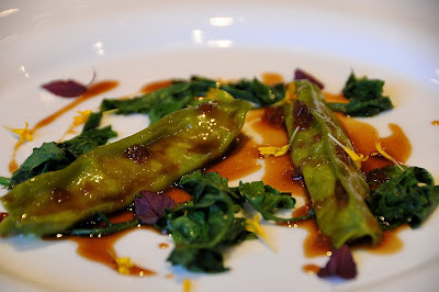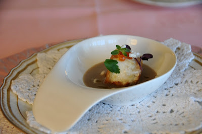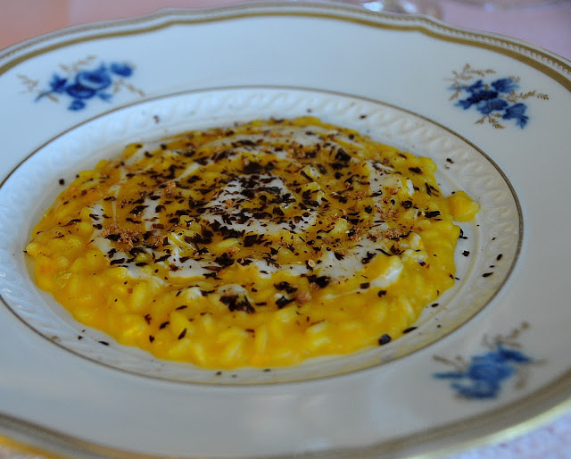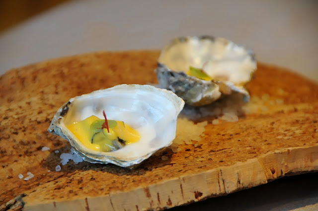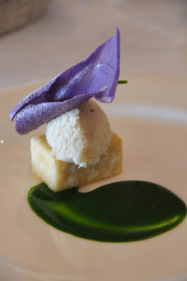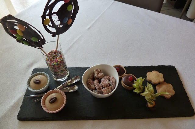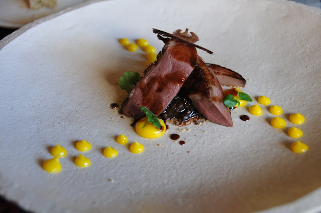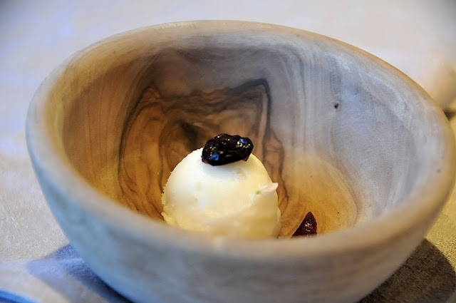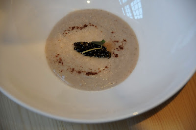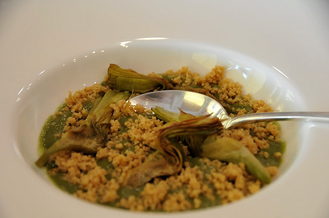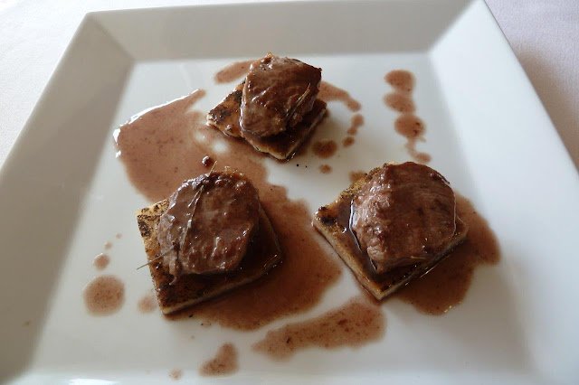 La cucina si presenta e mette subito le cose in chiaro, cialda di parmigiano alle arachidi, bigné di caprino e zucca, tartelletta con ricotta e chicchi di riso soffiato al curry e poi ancora, baccalà panato, crema di patate con aceto della Val di Scalve e "cialda" di crudo, pane e grissini in diverse versioni (tutto autoprodotto e freschissimo) e un paio di calici di bollicine trentine.