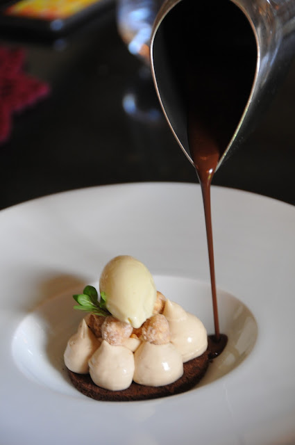 Dopo il sorbetto apripista al mandarino, indeciso tra dolce e gabbana opto per una porzione di CioccoLampone e un Moscato Rosa di Franz Haas