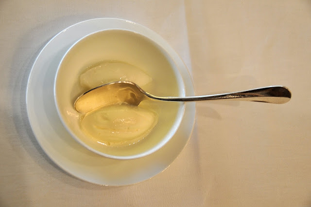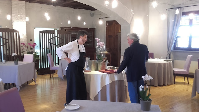 Accogliente ristorante a conduzione familiare, mise en place di livello, tavoli ben distanziati, comode sedute, tovaglie bianche come le ceramiche dalle linee particolari e dalle dimensioni importanti ma armoniche, il locale è impreziosito da travi di legno e colonne in pietra (preoccupante sarebbe il contrario), in cucina Cristian e il padre Gianni, in sala Nives, la mamma di Cristian e la sorridente e per nulla invadente Giulia che si occupa anche della pasticceria e, fortunatamente, anche del mio tavolo.
