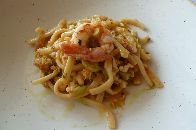 Scialatielli con gamberi, cavoletti e briciole di pane tostato